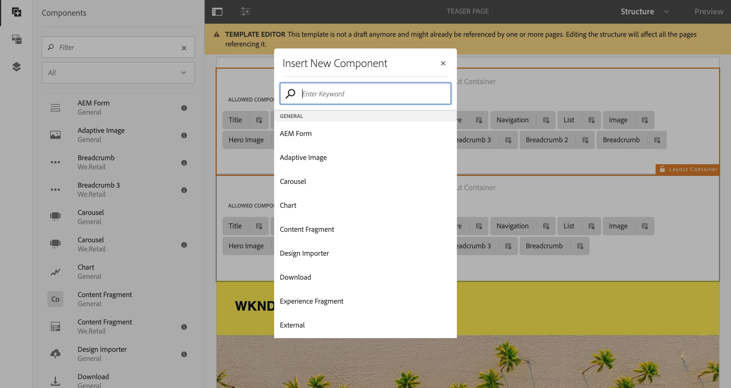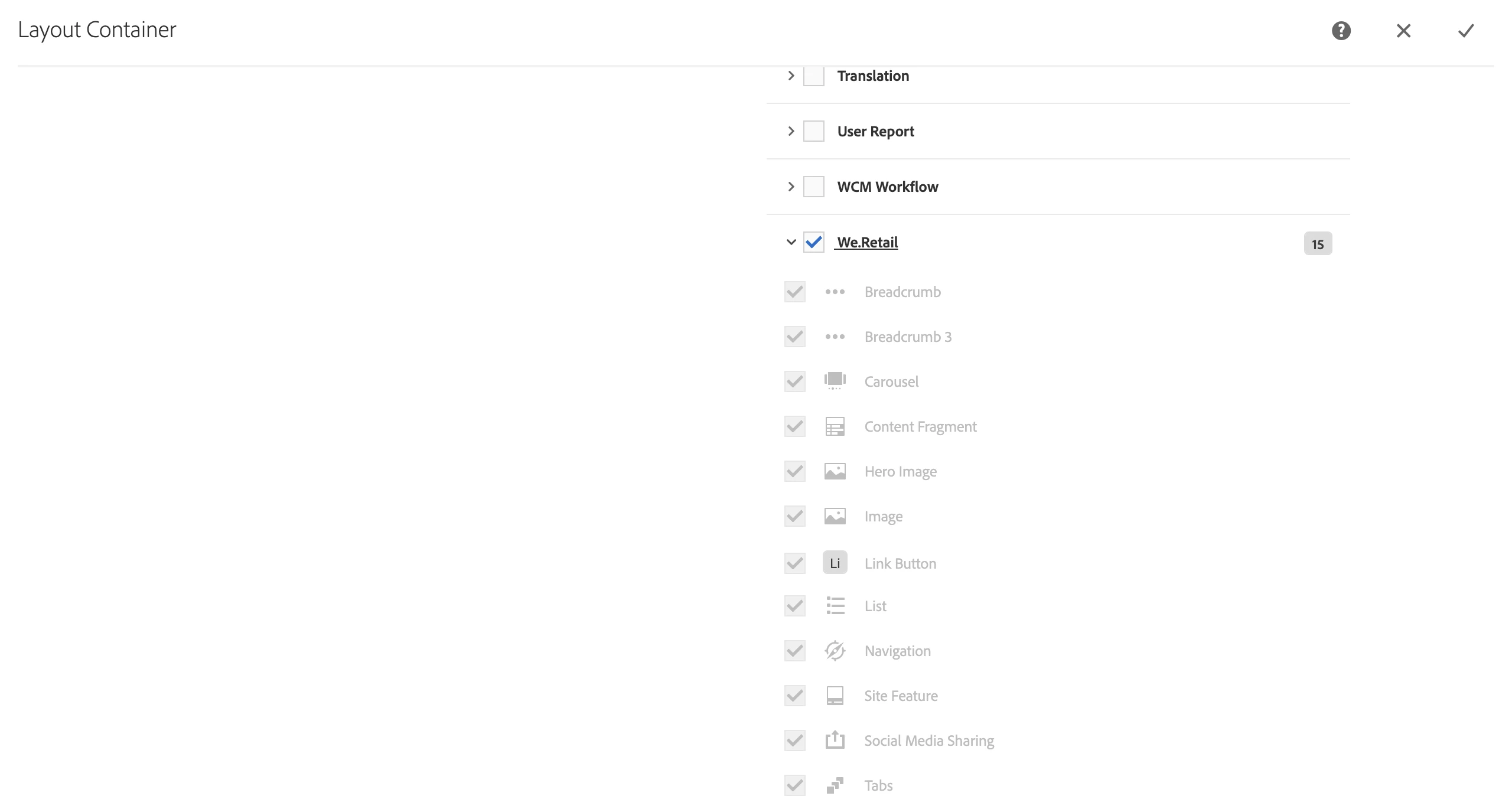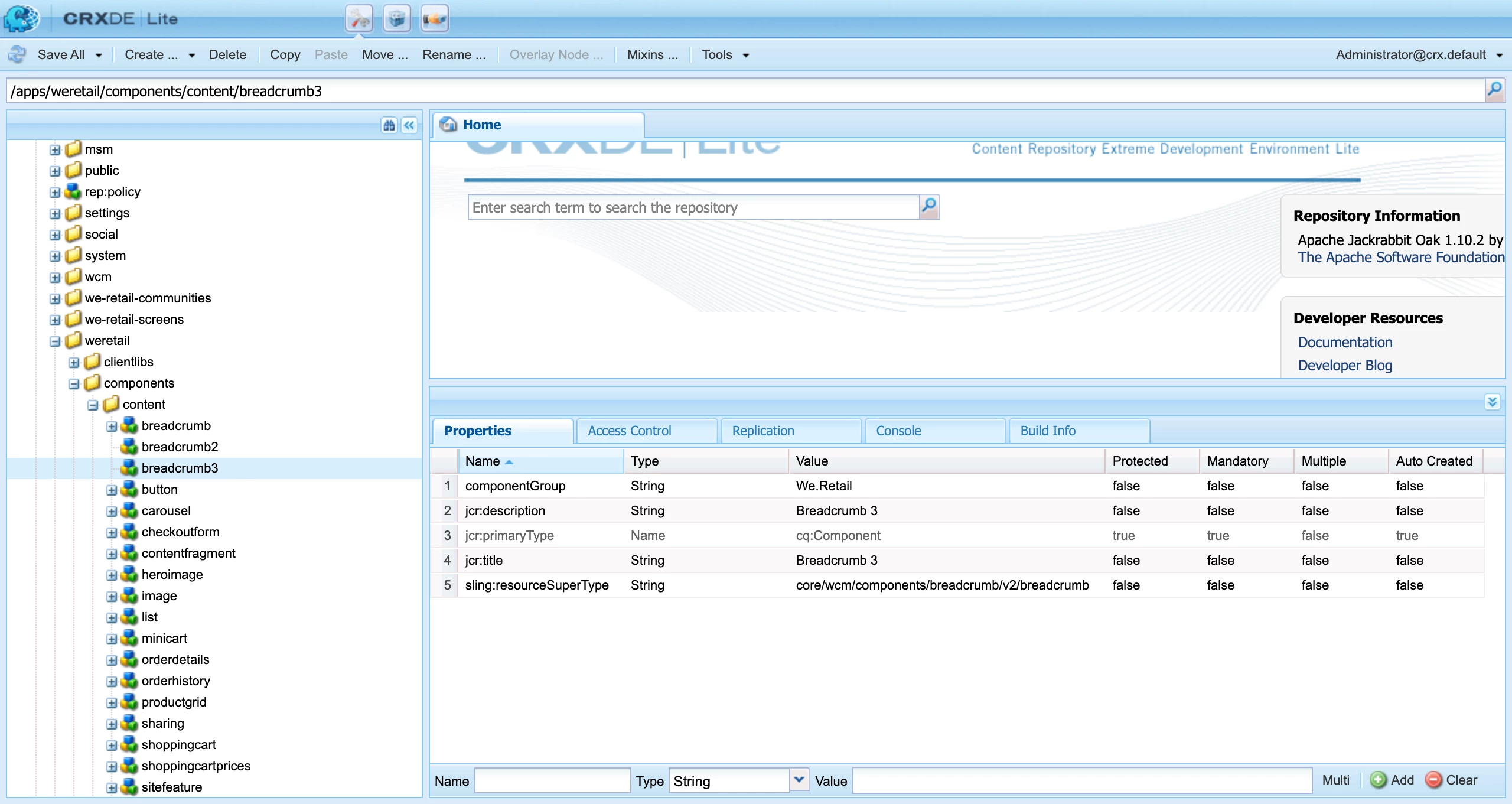 and I am stuck with a extended component I am trying to use. I have extended it from core/wcm/components/breadcrumb/v2/breadcrumb and name it as breadcrumb3 inside the We.Retail folder, however at the time I try to put it available in the container using the policies I can not access to it. Please have a look at the images.