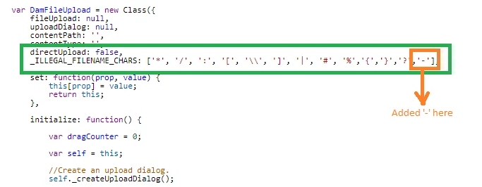 For extending the restriction functionality to few more characters, we need to overlay the above node (fileupload.js) and make the required changes in it.