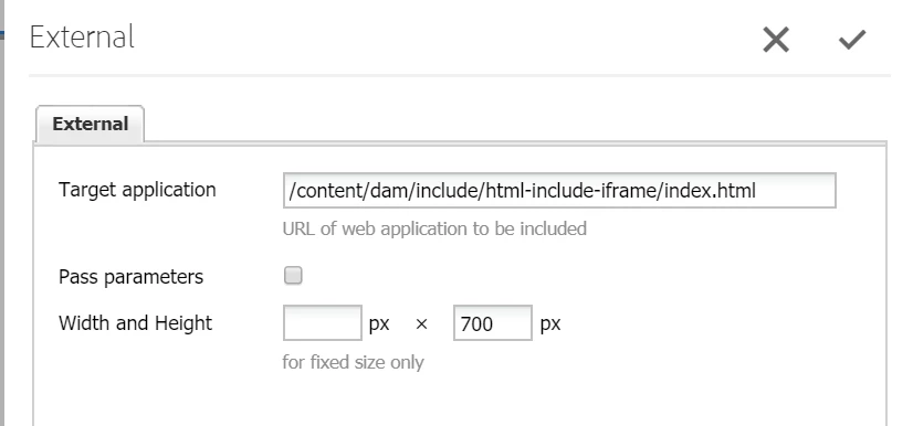 The requirement is I have to include a HTML file to a page, it's like using iframe. Since i am using AEM6.3.0, limited to use OOTB External component instead Embed component.