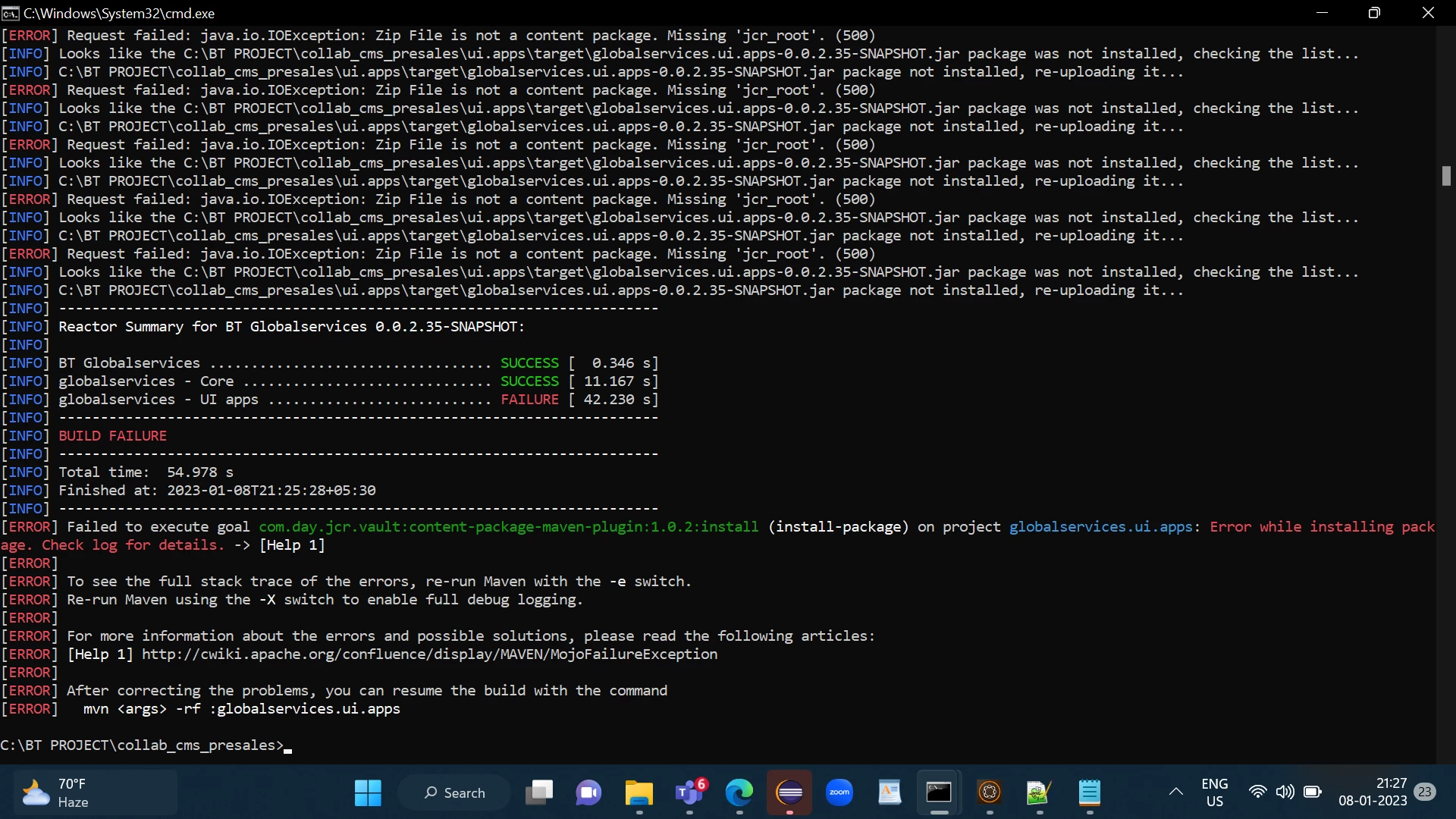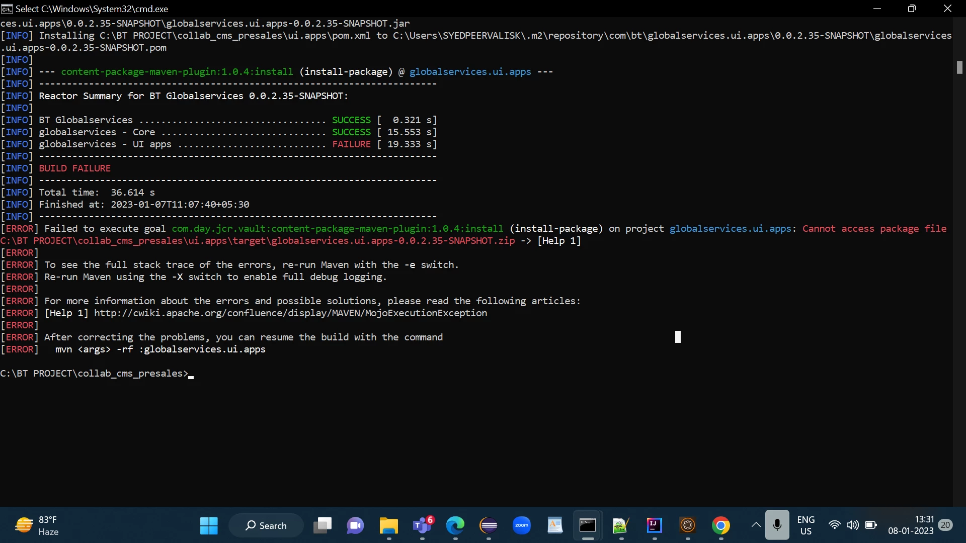 Failed to execute goal com.day.jcr.vault:content-package-maven-plugin:1.0.4:install