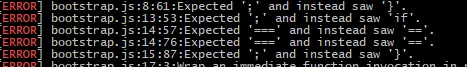 JS Lint is more about "Good Parts" of JS(javascript - Does it make any sense to use JSLint and follow it? - Stack Overflow ). It seems the error that it shows is in bootstrap plugin JS. You should exclude plugins from the JS Lint checking. If your bootstrap JS is in one of these folders, it will be ignored. If no, you should add an exclusion rule for the same.