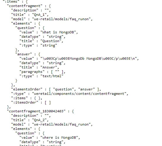 So we have created proxy api pages for each services and placing the content fragments over to the pages using Content Fragment component. Now for sending the FAQs of any service as an content we can use the model.json placed after the proxy api pages , the issue we are facing is we are getting unwanted fields in generated json we just want question and answer field in generated json , is there any way to resolve this issue .