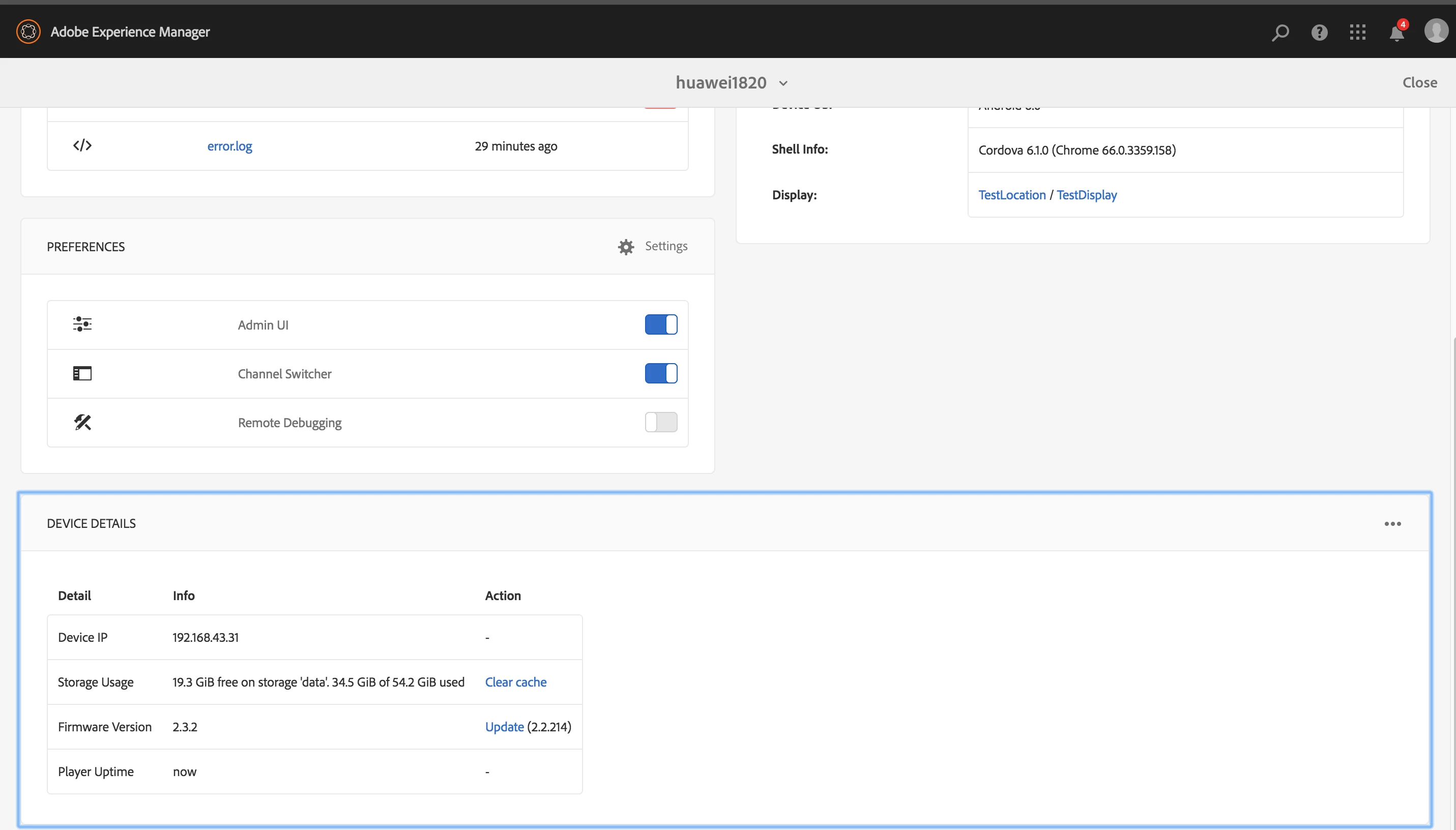 I'm working on AEM Screen right now. Problem I encounter is, mis-align firmware version on my client device and aem server. On my device dashboard, I see my device is with firmware 2.3.2, while in Action column is 2.2.214.