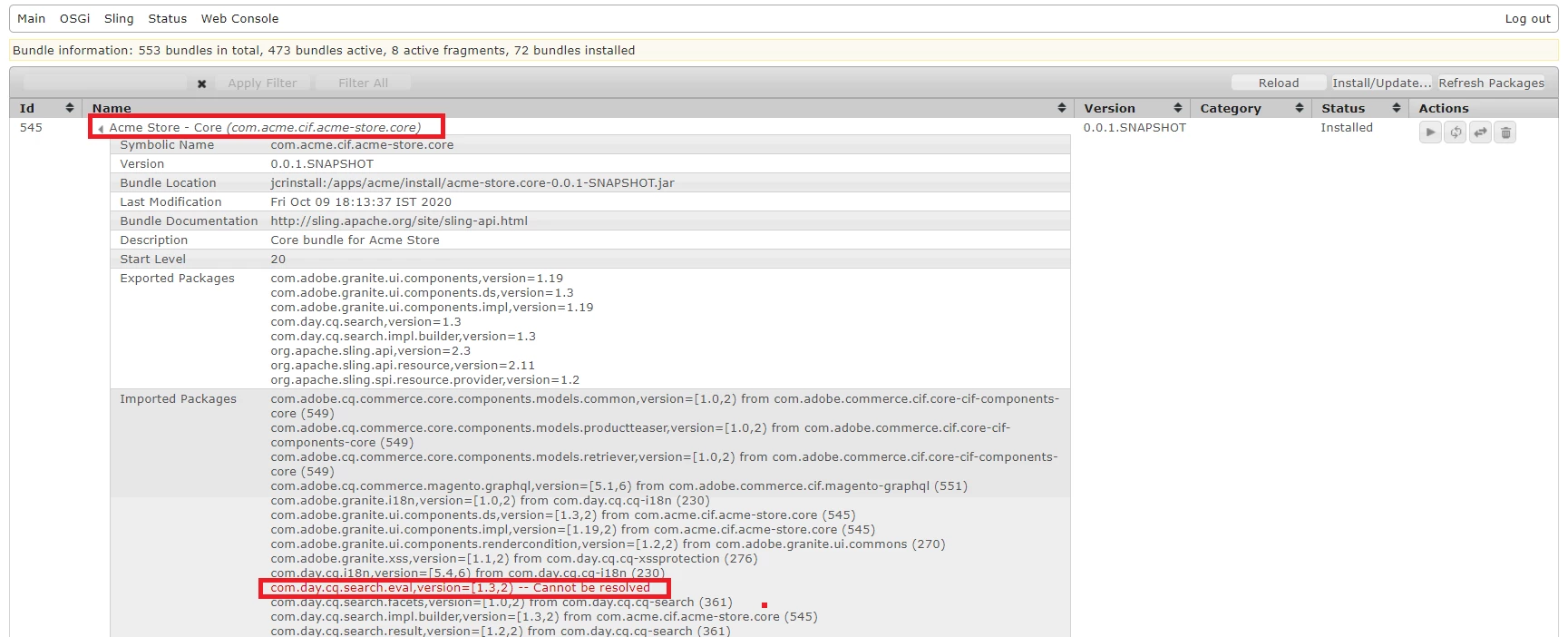 However, their status is Installed not Active, there were some dependencies issue, I fixed all except first Bundle screenshot given below, but other bundles are still not active.