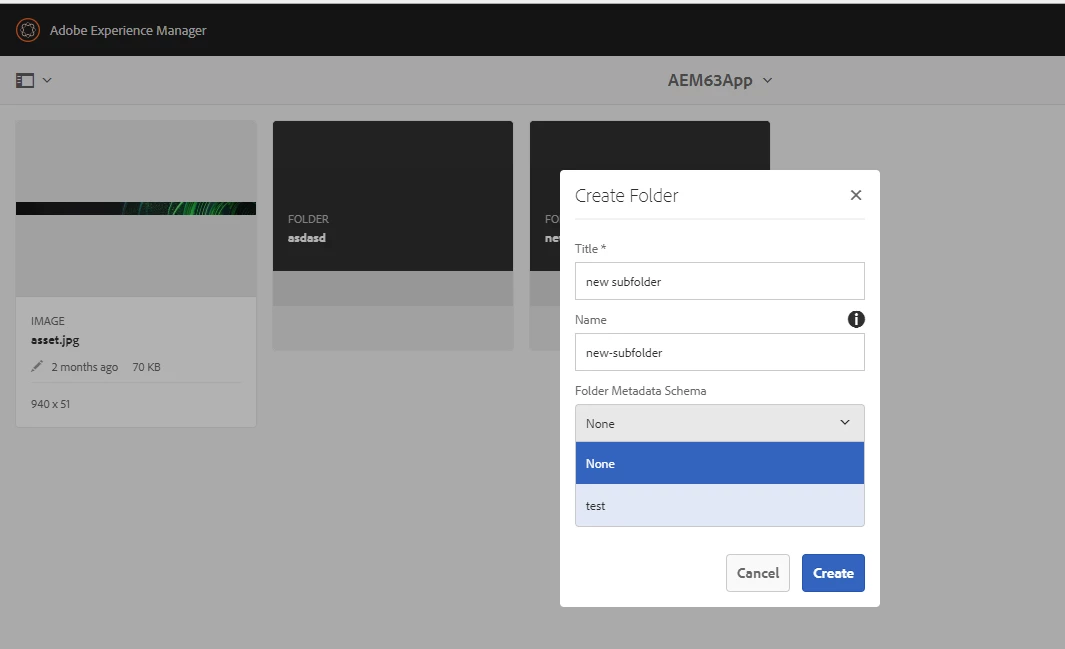 folderMetadataSchema       /conf/global/settings/dam/adminui-extension/foldermetadataschema/test