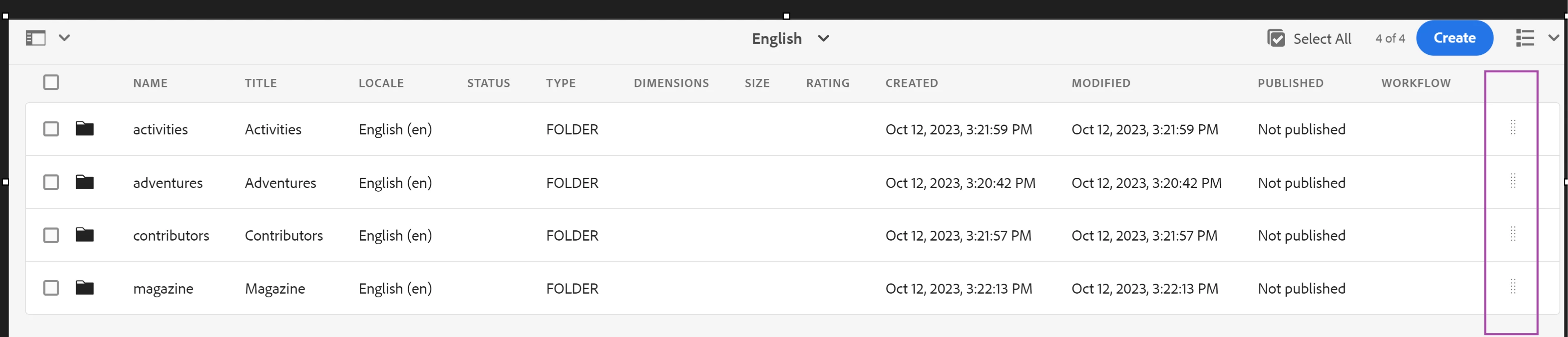 sling:orderedFolder -: The following node type is sling:folder + an ordering scheme bundled into one. The assets could be ordered in the List View by drag and dropping a handle at the right hand side of the list – as long as the parent folder was set to "Orderable" (i.e. had a "sling:OrderedFolder" type in JCR).