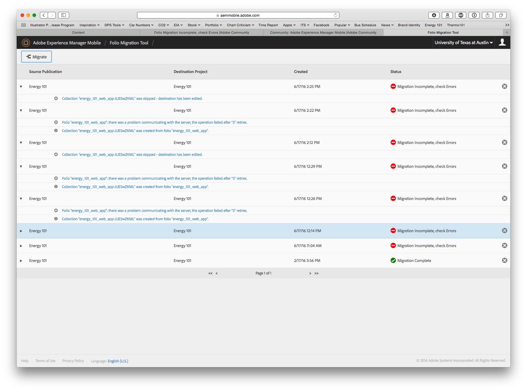 Attempts to migrate a “classic” DPS folio fail with the error, “Folio “folio name”; there was a problem communicating with the server, the operation failed after “5" retries."