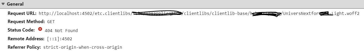 Fonts not loading in Network tab showing 404