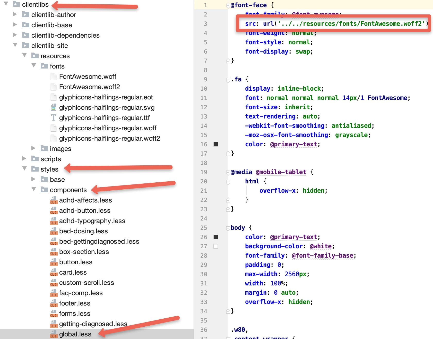 Fonts not loading in Network tab showing 404 AEM 6.5