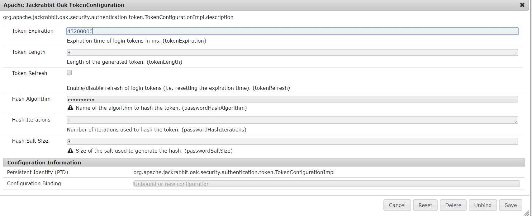 [0] http://host:port/system/console/configMgr/org.apache.jackrabbit.oak.security.authentication.token.TokenConfigurationImpl