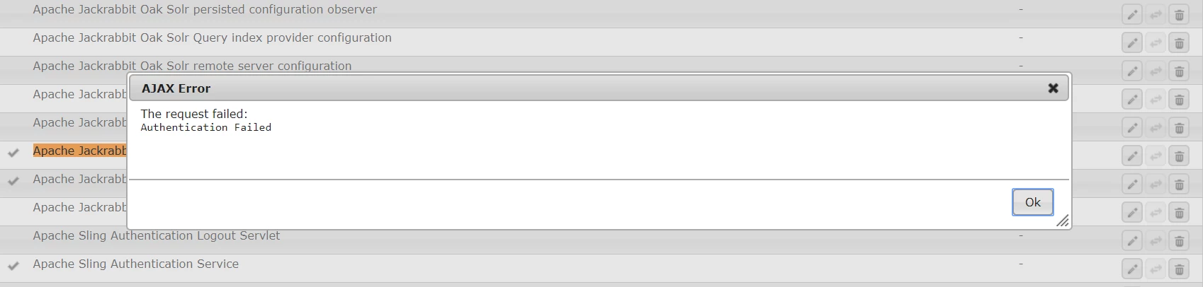 Can you try restarting your dev instance, as per my experience before, if we do any changes to Apache jackrabbit oak TokenConfiguration it will show authentication failed message.