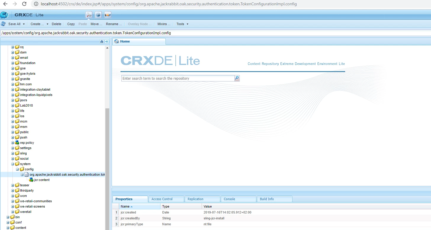 2. Go to /crx-quickstart/launchpad/config/org/apache/jackrabbit/oak/security/authentication/token