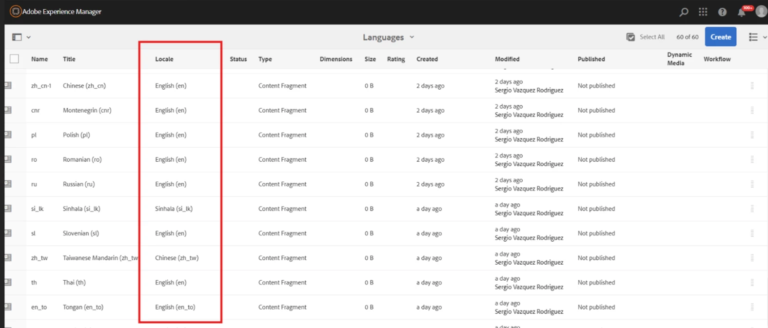 I have authored these content fragments in AEM , but these all are taking a locale property when viewed as list (List View of CF).