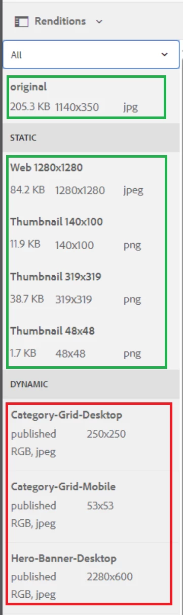 Asset Renditions: We are only getting Static Renditions and original rendition but not Dynamic Rendition.