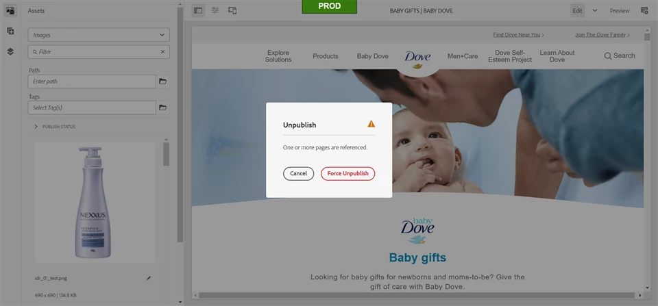 When we try to unpublish SaaS says there are Referenced pages but does not give the list of referenced pages, this is a serious limitation. This feature existed on the previous D2 platform. In Unilever platform some brands have over 800 pages and webmasters keep adding and removing pages on a very regular basis. There are many pages where Product URLS are also referred. Whenever a page or product is deleted or removed we do add 301 redirects. If there is an internal link if we don’t update those links then when user clicks on the link it redirects a new page url, This is being flagged by SEO error. Before unpublish a page the System is showing error but it is not showing which pages have reference and we have no way of knowing and it results in SEO ranking. In D2 the PDP Pages were published as pages and we used to unpublish before deleting. In SaaS there is no PDP page unpublish as we don't have any physical pages for recipe and products , hence when a PDP is deleted or renamed we have no way of knowing. |