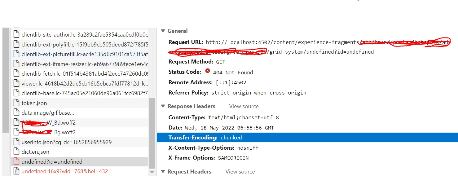 Getting 404 while loading experience fragment in DNS userinfo.json and undefined