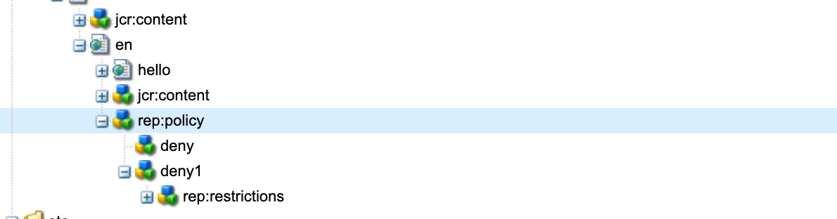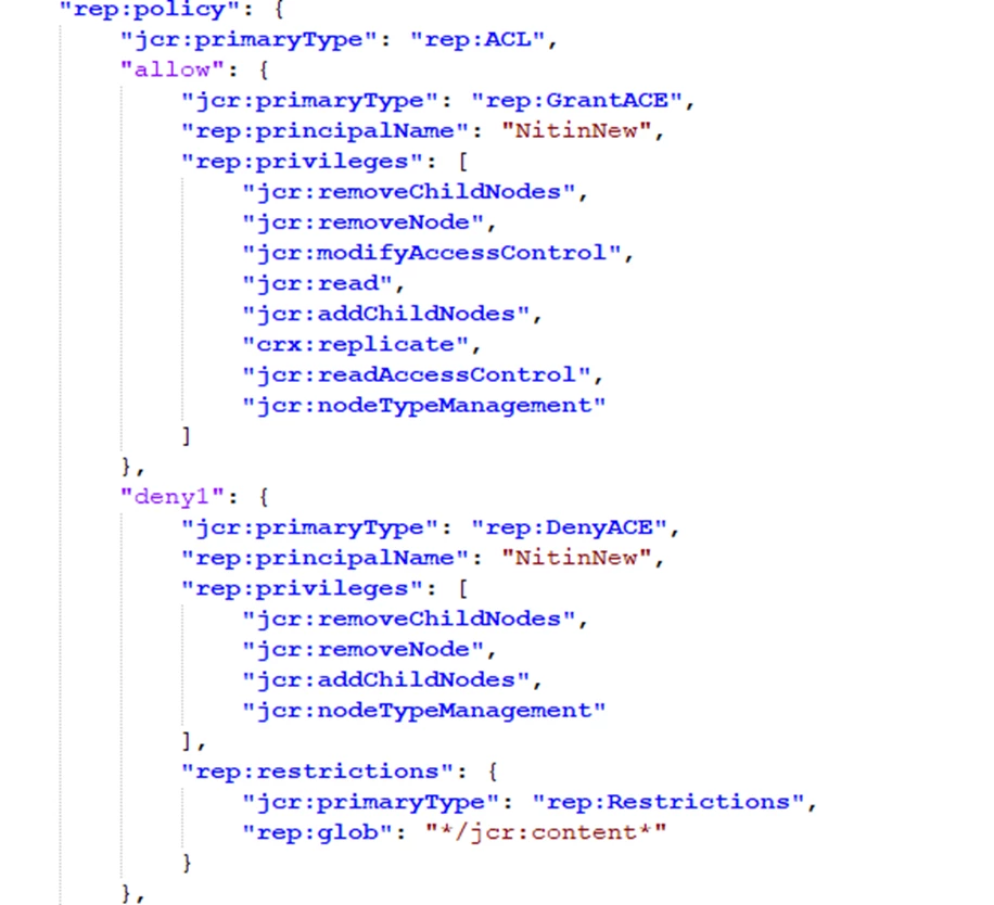 @akshaybhujbale That's expected behaviour - when you update ACL's those are stored under node as respective node as rep:policy as you see below and that's reflect in response of json