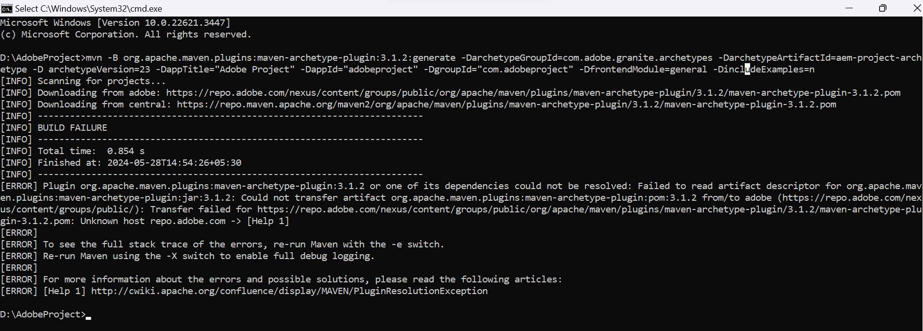Getting Error While Creating AEM Maven Project