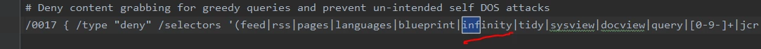 using .infinity.json we get json of AEM page but we are getting below error while hitting the below request.