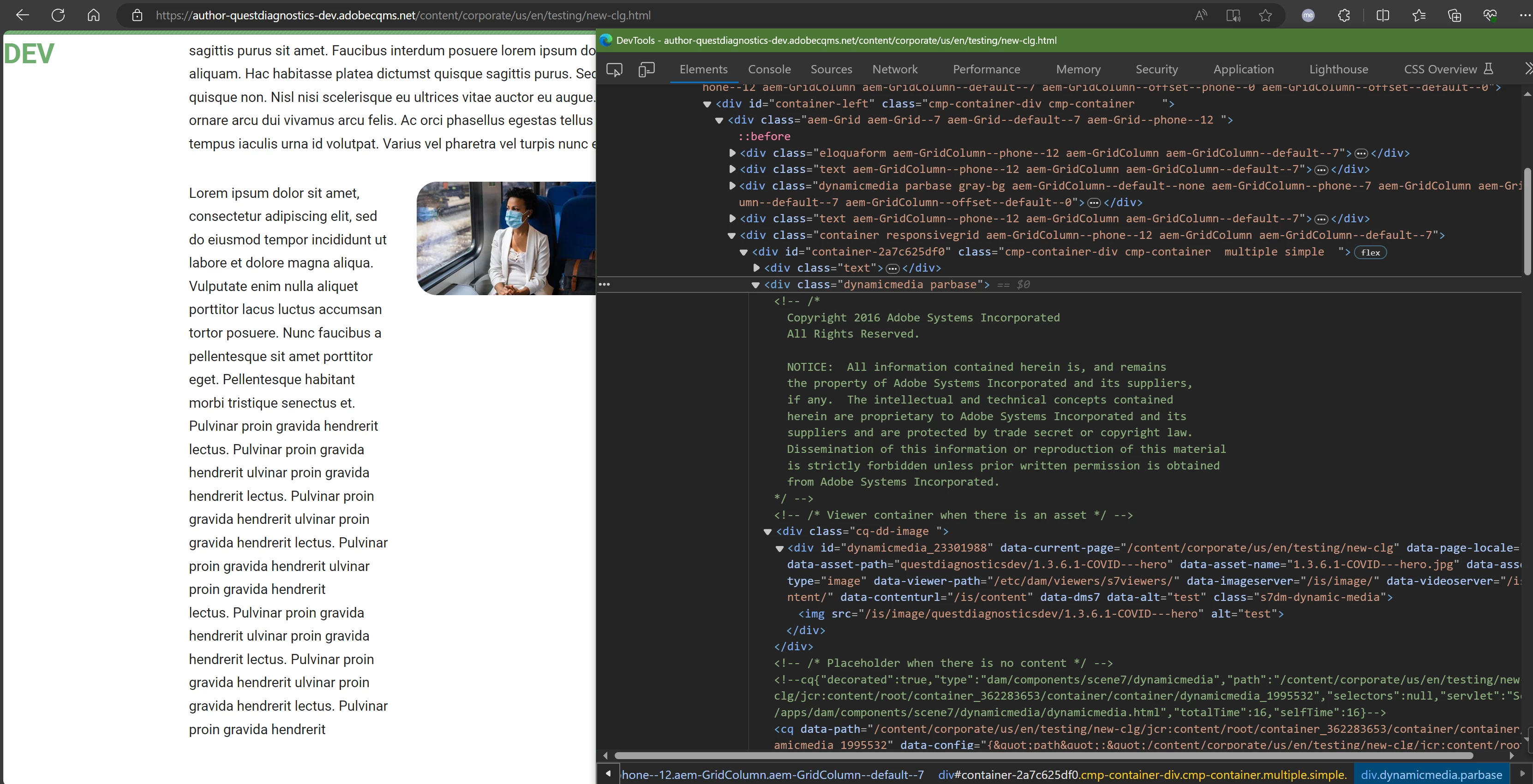I also attempted to set up a 50/50 container and added in a Text component and a Dynamic Media component, but quickly realized that since each component were in their own container, there wasn't a way to float it so the text could wrap.