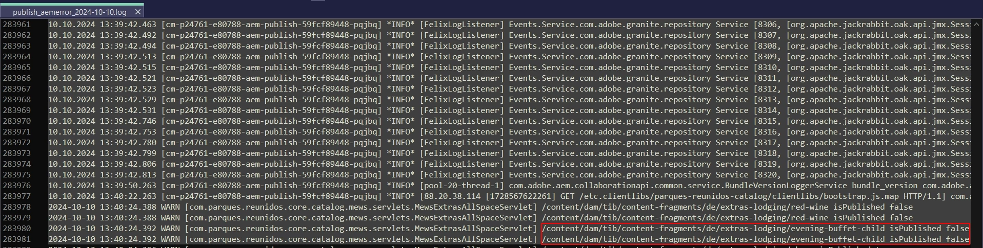 In one of our functionalities, we use a servlet that recovers the information of some content fragments in the project, however our client is asking us to dismiss content fragments that exist but are not published.