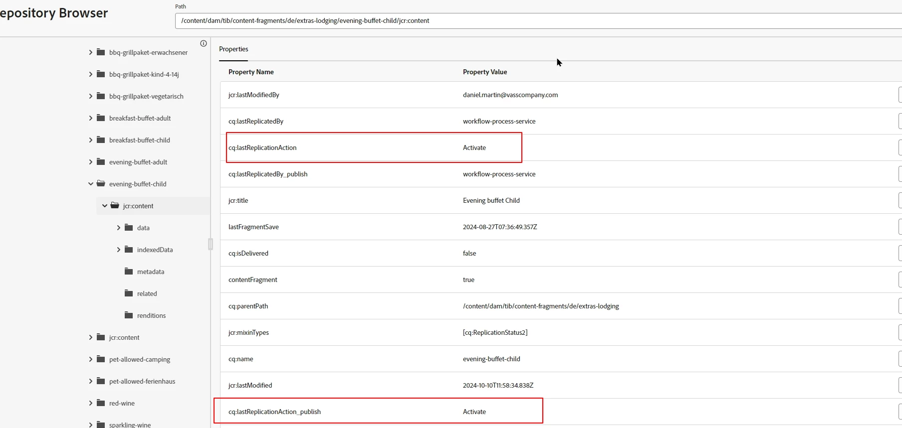 Getting the replication status of a content fragment, problems on publish instance