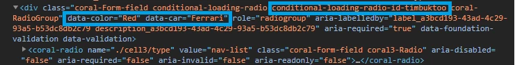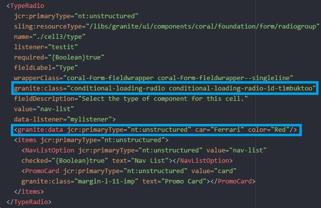 An example (with Granite UI - RadioGroup - granite:class and granite:data):