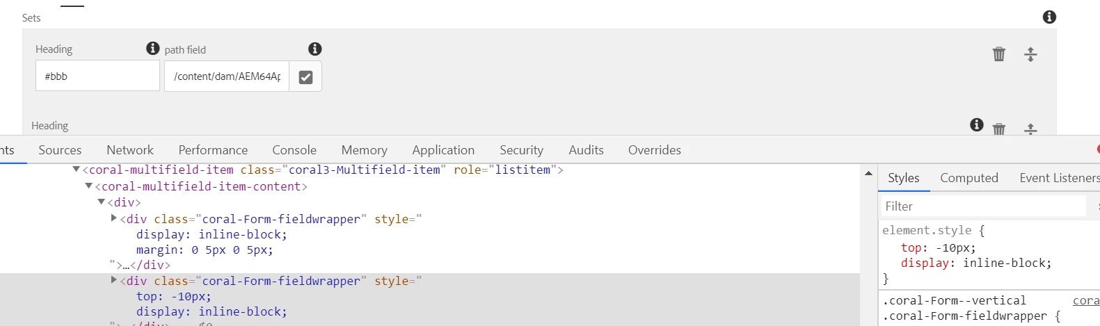 Granite UI Multifield Two column layout