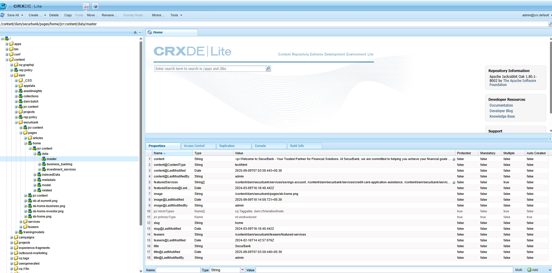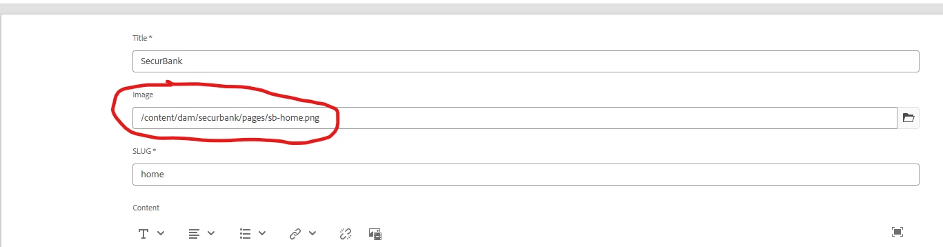 the resolver can’t produce a Dynamic Media/Asset-Delivery URL locally, so the field comes back null - even though your image property is set correctly (you can see the path stored at /content/dam/securbank/pages/sb-home.png in CRXDE).