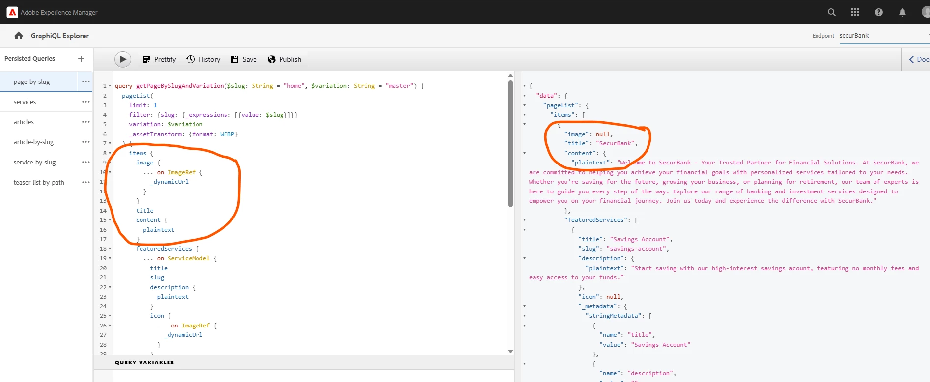 Publish the asset, the content fragment, the model, and the GraphQL endpoint.