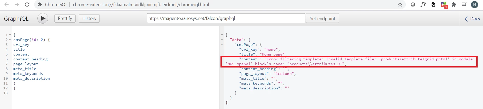 GraphiQL: Error filtering template: Invalid template file