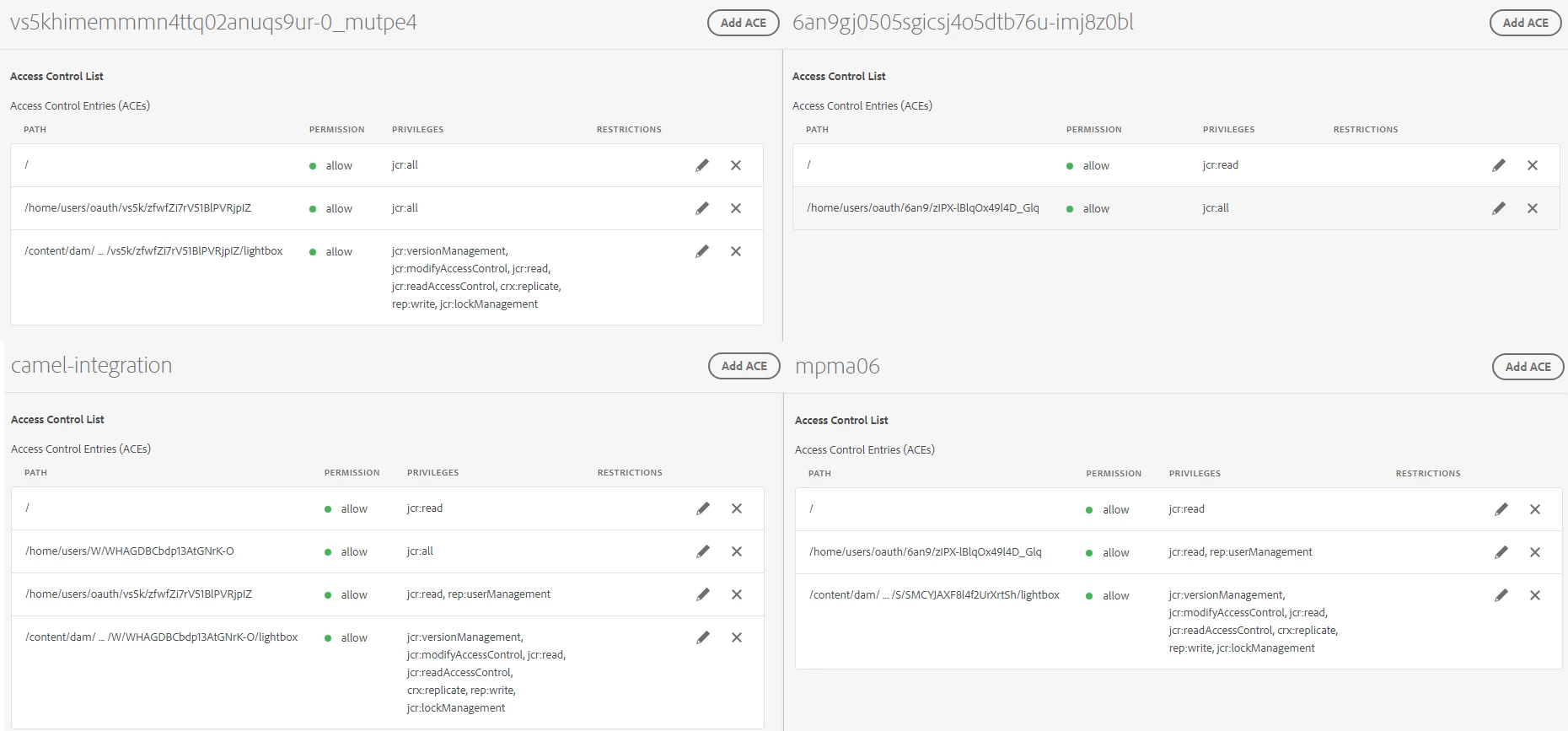 2- Allow jcr:read permissions form created user at "/" path