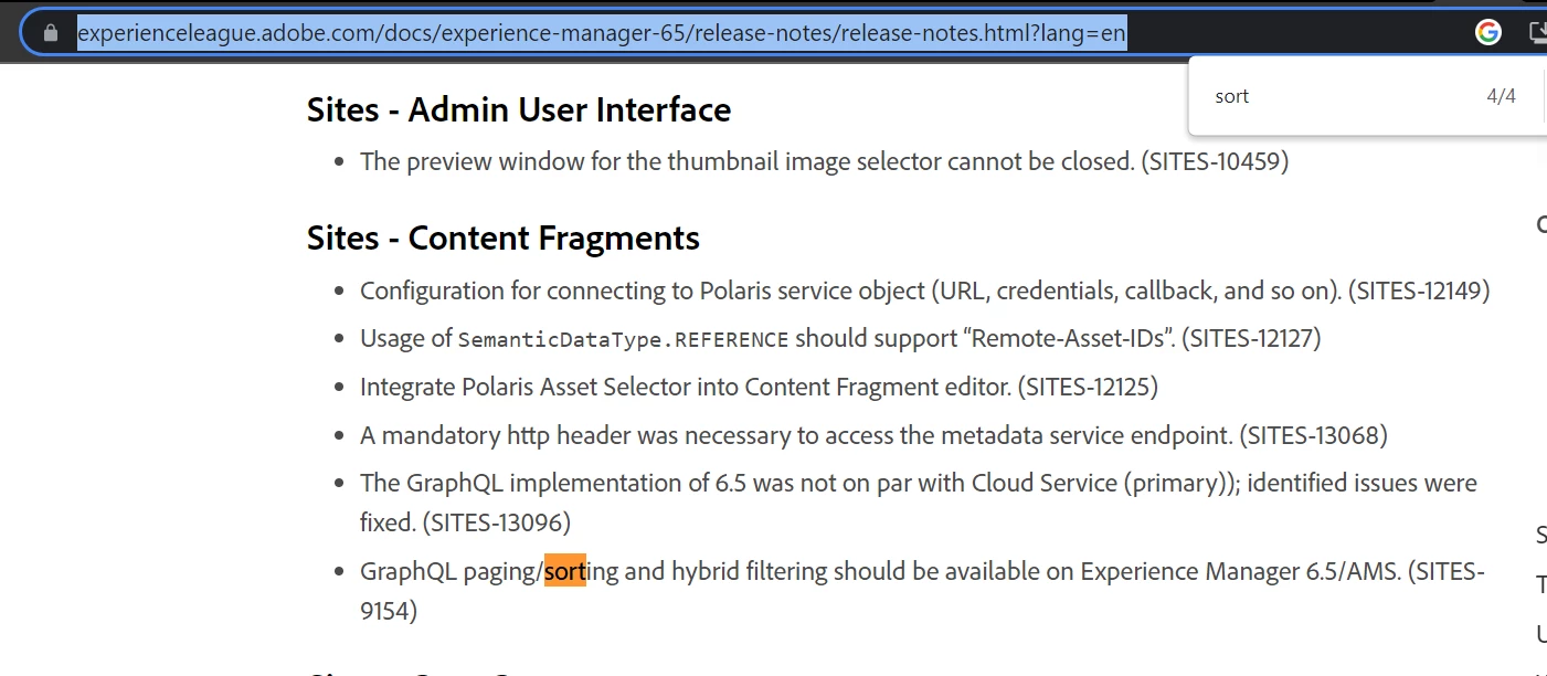 GraphQl Sorting support in service pack 17 | AEM 6.5