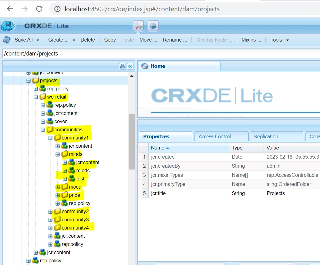 String communitiesSourcePath = "/content/dam/projects/we-retail/communities";
