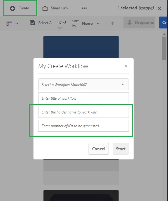 This is about handling an event on the overlayed "Create Workflow" model. Basically, I have to handle an event when the value changes in the dropdown