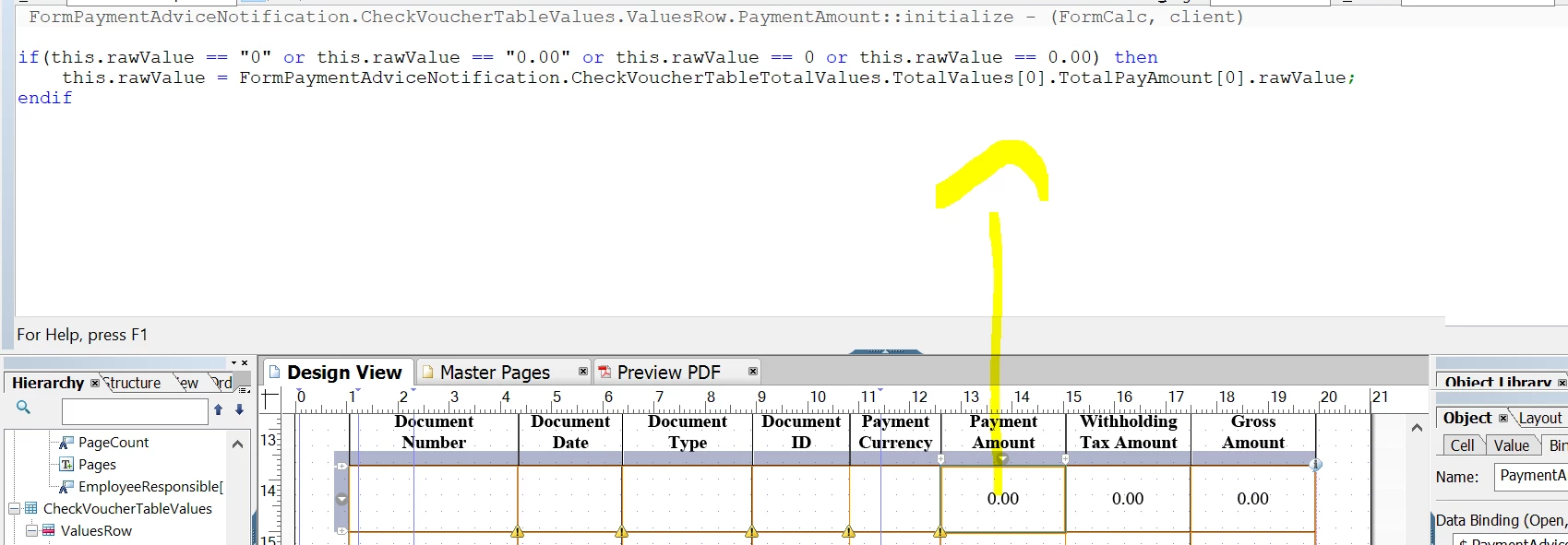 This the default script & Data Binding under Payment Amount