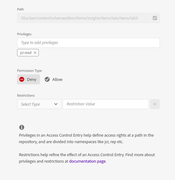 One more thing: your question is about hiding the insights tab from a particular user but in general its is strongly recommended to use a user to identify a particular person or service, but a group to attach ACEs. You would then add users to groups based on which rights they need and what their role is within AEM. This is much cleaner, much more semantic and makes your configurations re-usable in the future 🙂