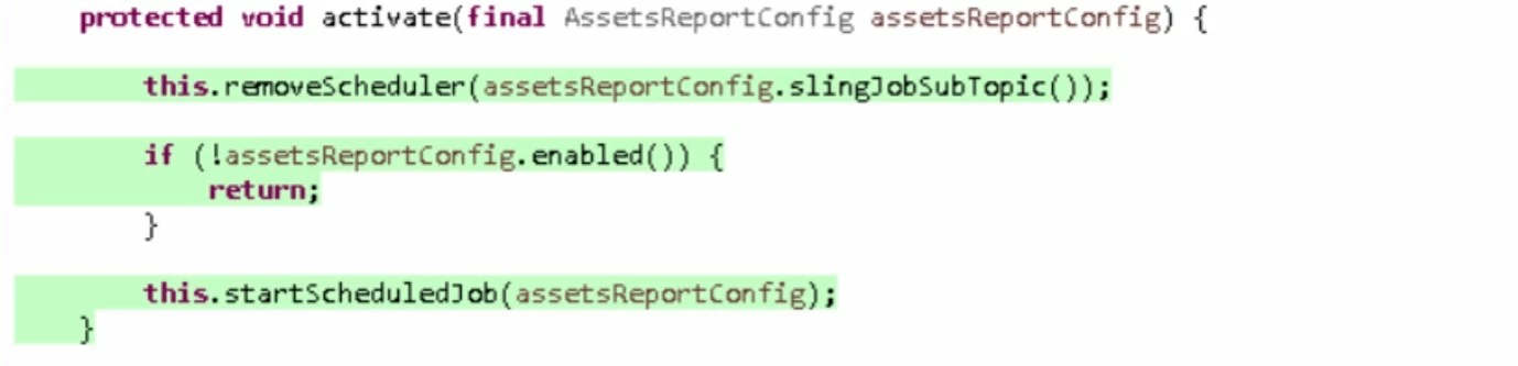 @Component(service = Runnable.class, property = { Scheduler.PROPERTY_SCHEDULER_EXPRESSION + "=0 30 * * * ? " })