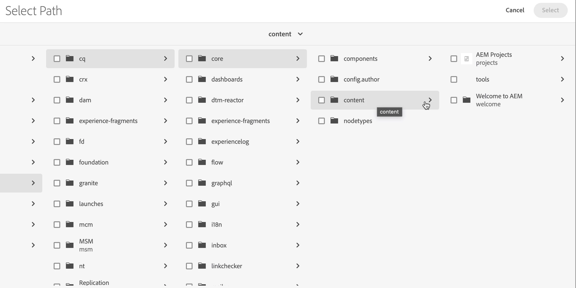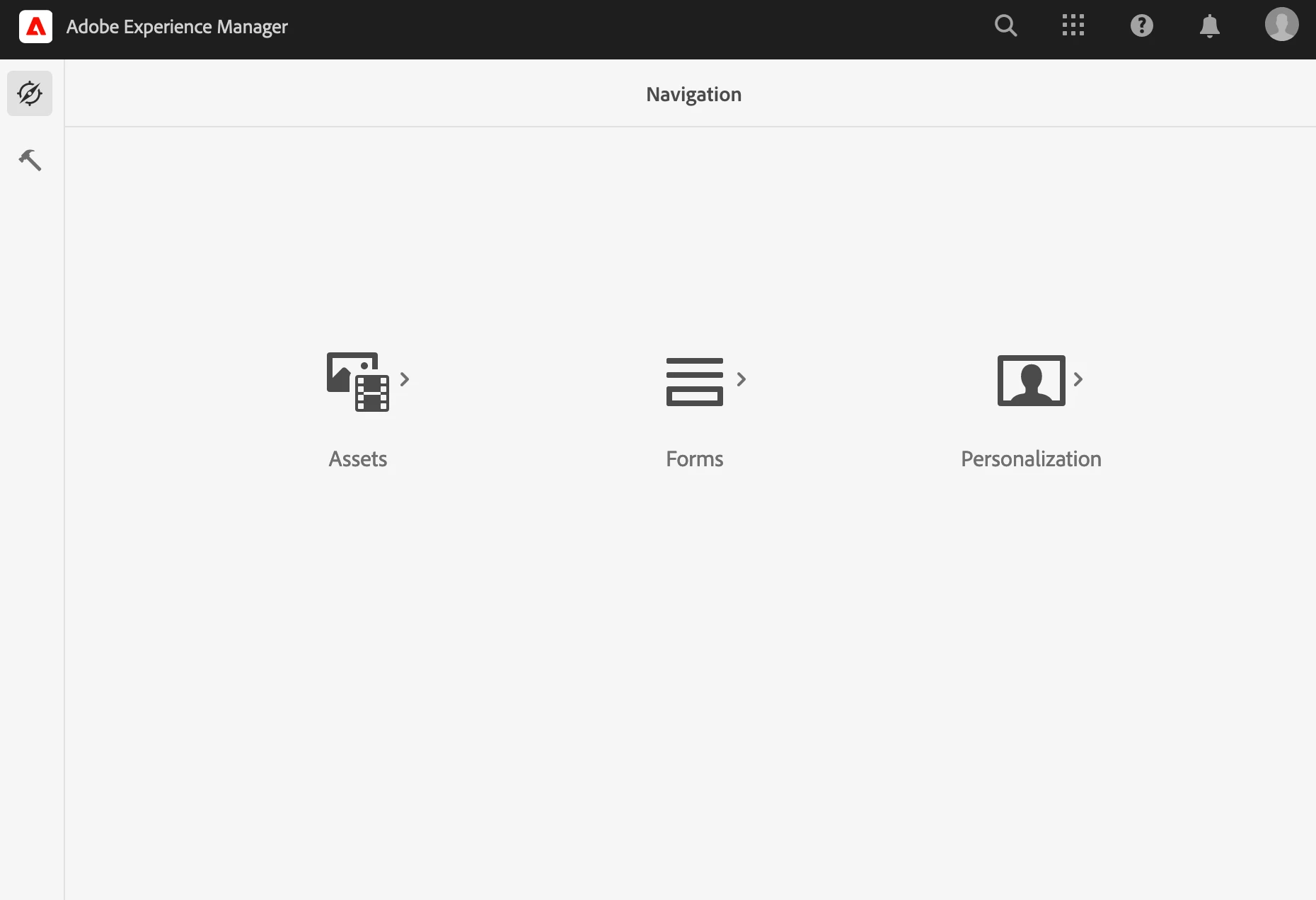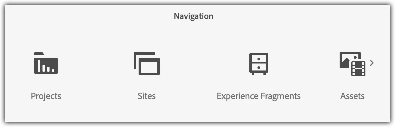 Working in AEMaaCS and need to hide the Projects, Sites and Experience Fragments options on the AEM Start page (aem/start.html) shown below: