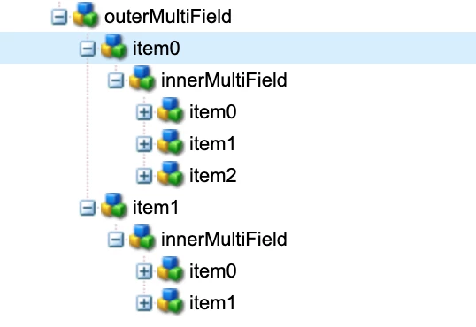 List<OuterMultiField> getOuterMultiField(); // the name 'getOuterMultiField' corresponds to the multifield name="./outerMultiField"