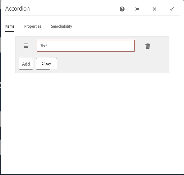 I would like to know if it's possible when working with an accordion to simply copy the previous item and component type. For some context I have multiple FAQ sections with numerous items in each accordion. For example. I need to have 20 items. Each item is a text component. I'm currently having to add each item one by one. This is very time consuming. Is this possible?
