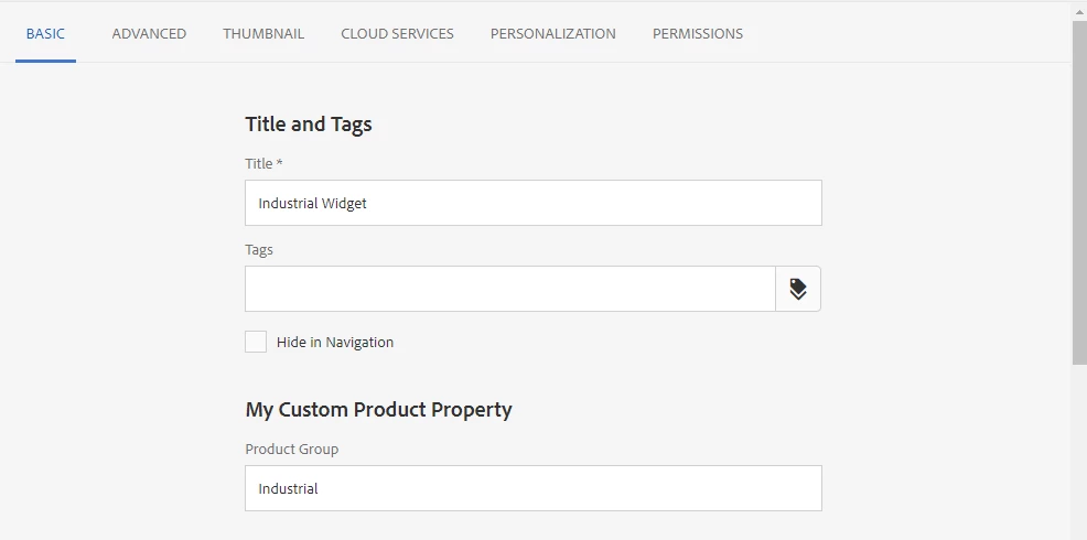 I am building a small site using a dashboard,which provides thumbnail links for all of its child pages. You can think of it as a products page/dashboard, and each child page is a detail page for a single product. The attached image shows the custom property Product Group added to the page property sheet.