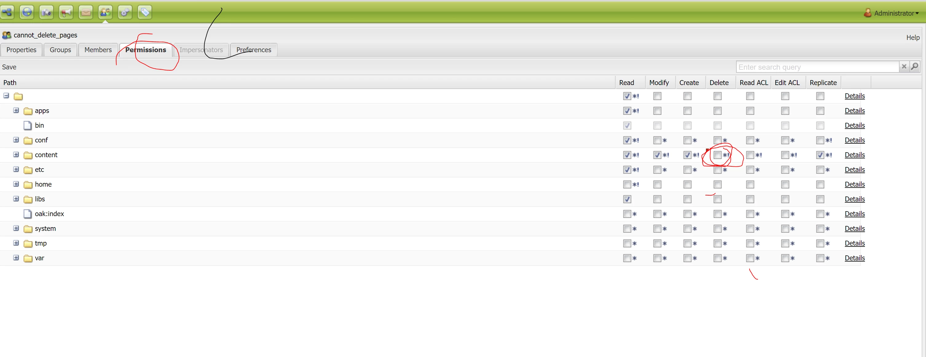 - I tried doing removing their delete page ability via ACL but removing one of the write permissions also disables create page and edit content permissions.
