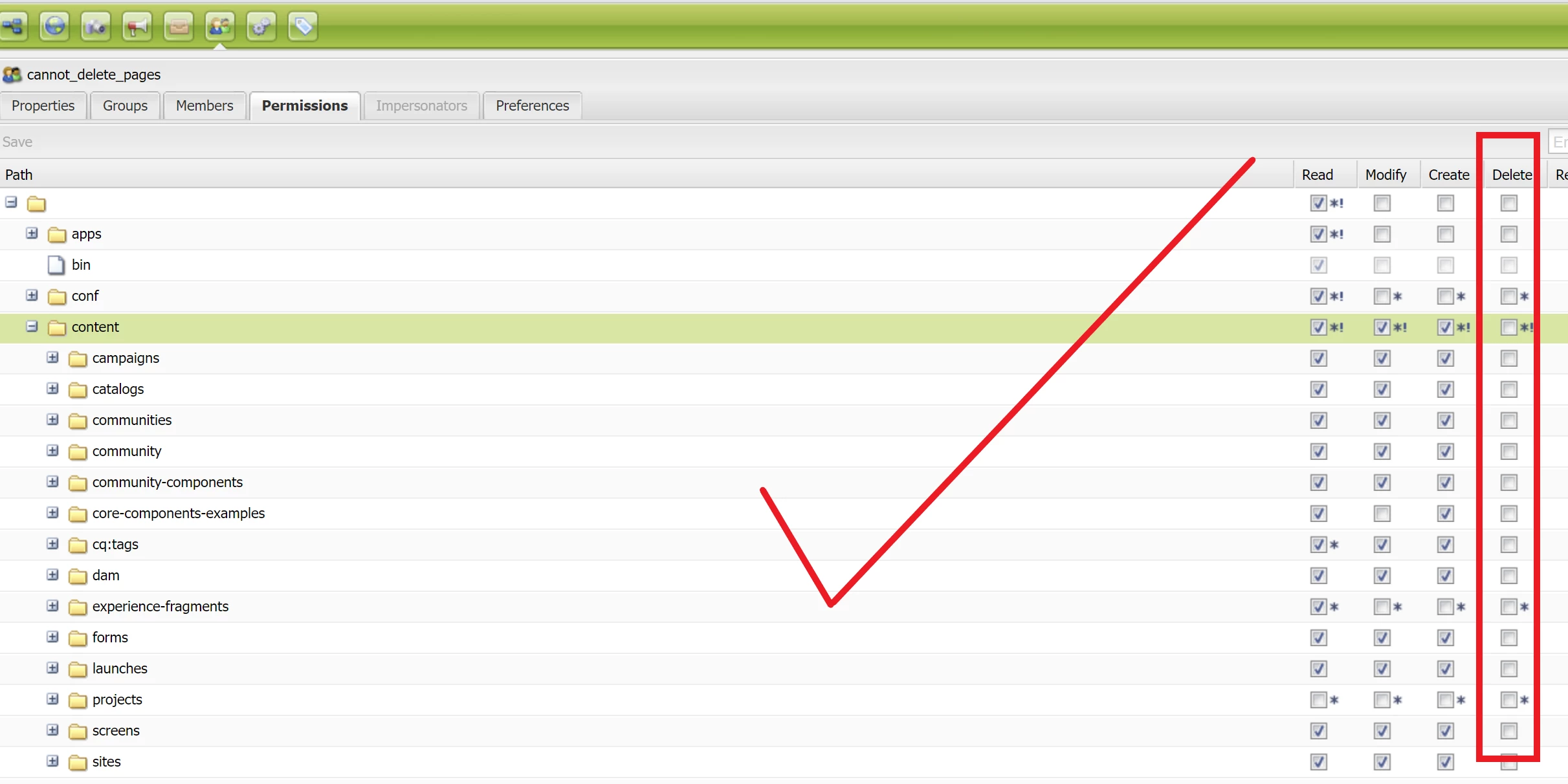 - But I want to remove their ability to delete pages.