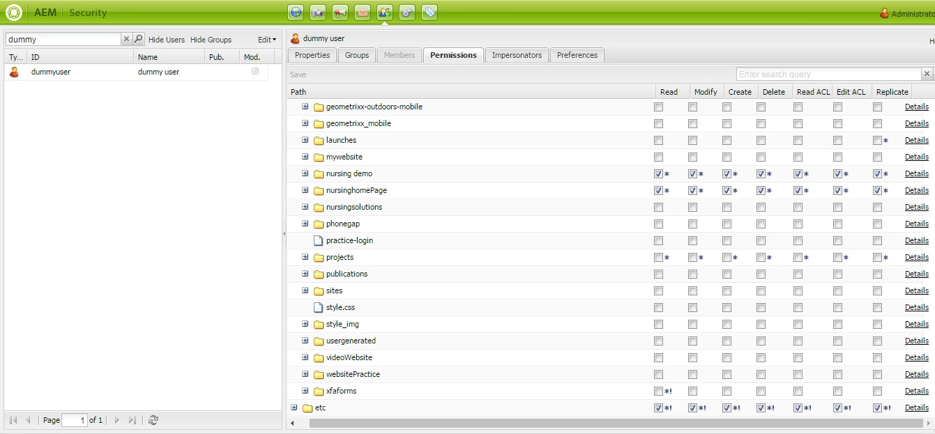 - Assign permission to "onlyen" to read site specific content "/content/geometrixx/en"