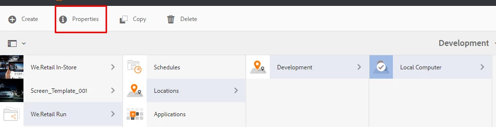 AEM screens location properties