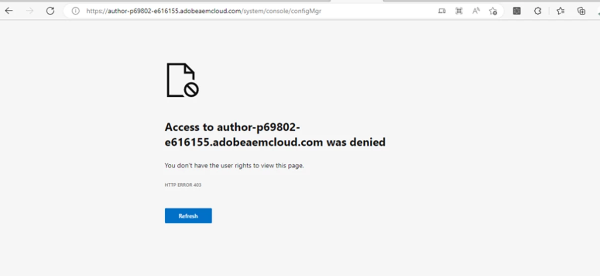 We are trying to access “system/console/configMgr" for some system level configuration. For our usecase it is very important to aceess the configMgr window.