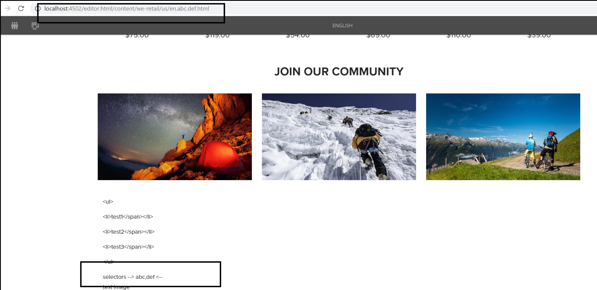 (AEM 6.3.2) I'm requesting a page with the selector "test1", like this: http://localhost:4502/content/myapp/home.test1.html
