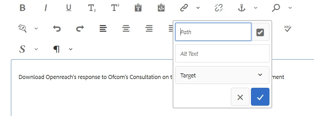How to add custom hyperlink to AEM rich text Component
