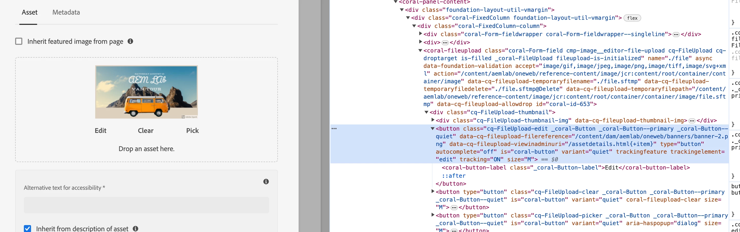 2. Write clientlibs, to read the pathfield and open a new tab with page/assets, example page edit path (http://localhost:4502/editor.html/content/aemlab/oneweb/reference-content/image.html)